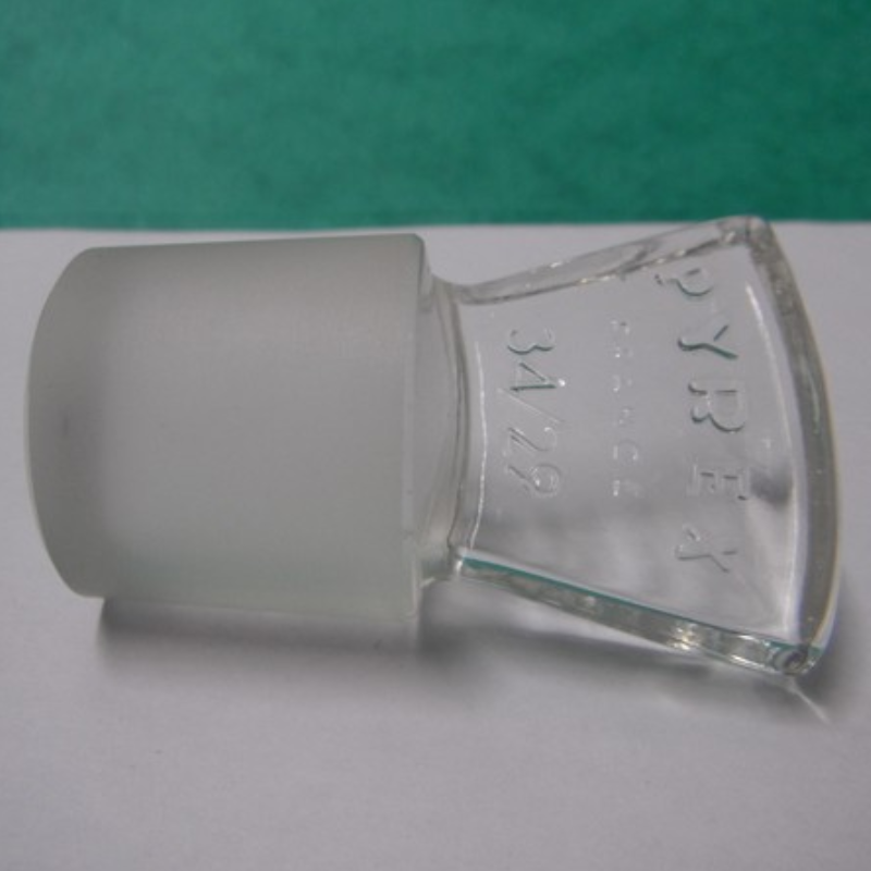Bouchon en verre à rodage normalisé. Verre : Clair plein, Bout Plat. Conforme à la norme DIN 12252. Verre borosilicaté.