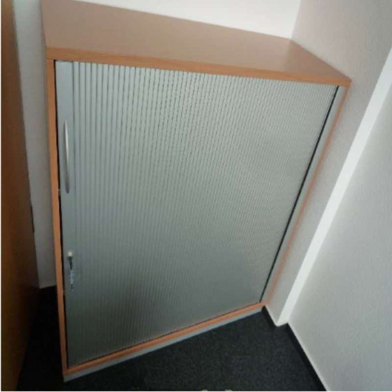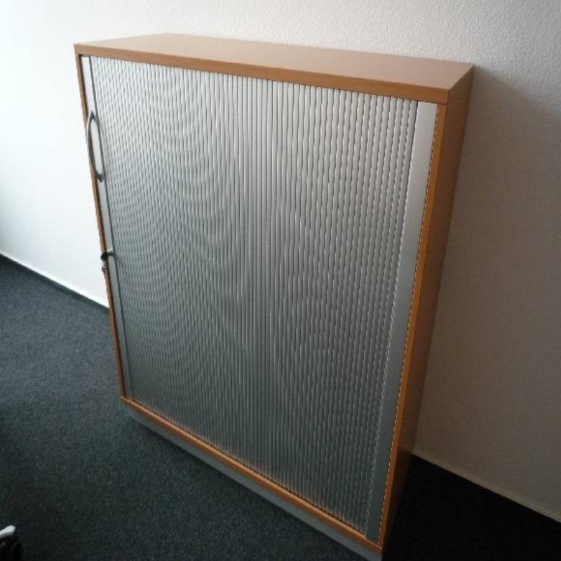Meuble de rangement avec portes coulissantes verrouillables par clé, idéal pour l’archivage sécurisé de dossiers. Dimensions : 120 × 45 × 120 cm.